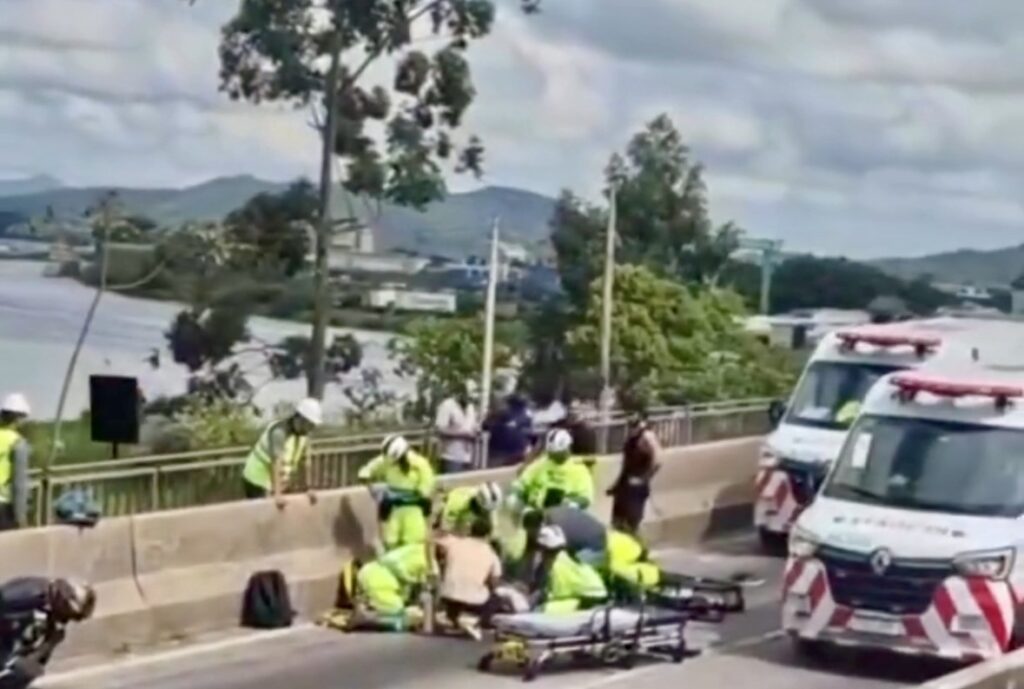 Motociclista é atropelado por carreta na ponte entre Navegantes e Itajaí e trânsito entra em colapso