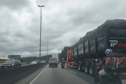 Acidente entre caminhão e moto deixa trânsito lento na BR-101