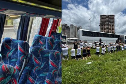 Emboscada planejada: santistas furtam barras de ferro e destroem ônibus do Inter, deixando quatro feridos
