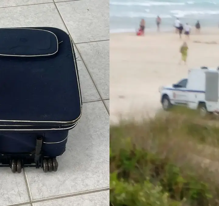 O Corpo de Bombeiros Militar foi acionado por volta das 17h de domingo (28), após banhistas sentirem odor forte próximo à trilha do Costão, na Praia do Santinho. No local, uma mala presa entre pedras chamou a atenção.